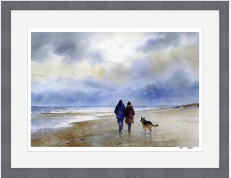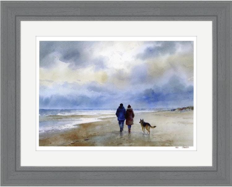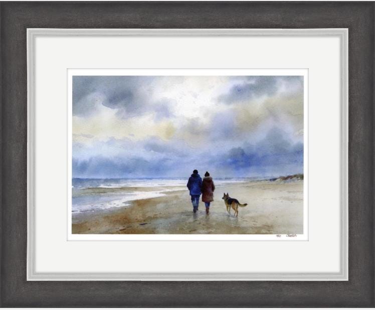 These very limited edition prints from my original watercolour painting 'Stormy Afternoon Walk' are limited to only 50 in each size. Each print will be individually signed, numbered and come with a certificate of authenticity with it's numbered edition.
